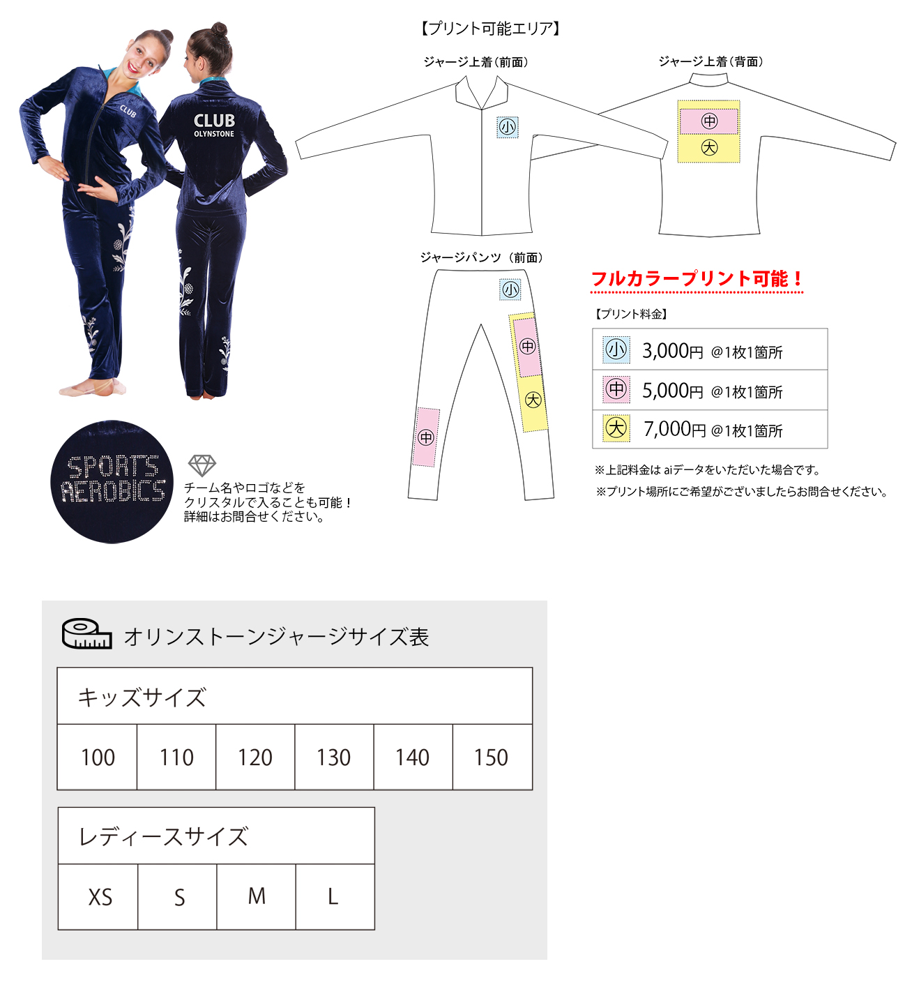 光沢感の美しいメタリック生地を使用したチームジャージです。体操・新体操・バレエ・HIPHOPなど様々なジャンルの皆様に。襟の素材を変更することが出来ます。オリジナルロゴのプリントや刺繍、クリスタルでチーム名等を入れることも可能です(プリント、刺繍、クリスタルロゴの料金はaiデータをいただいた場合の料金です。それ以外のデータの場合はお問合せください)その他、詳細はお問合せください。
