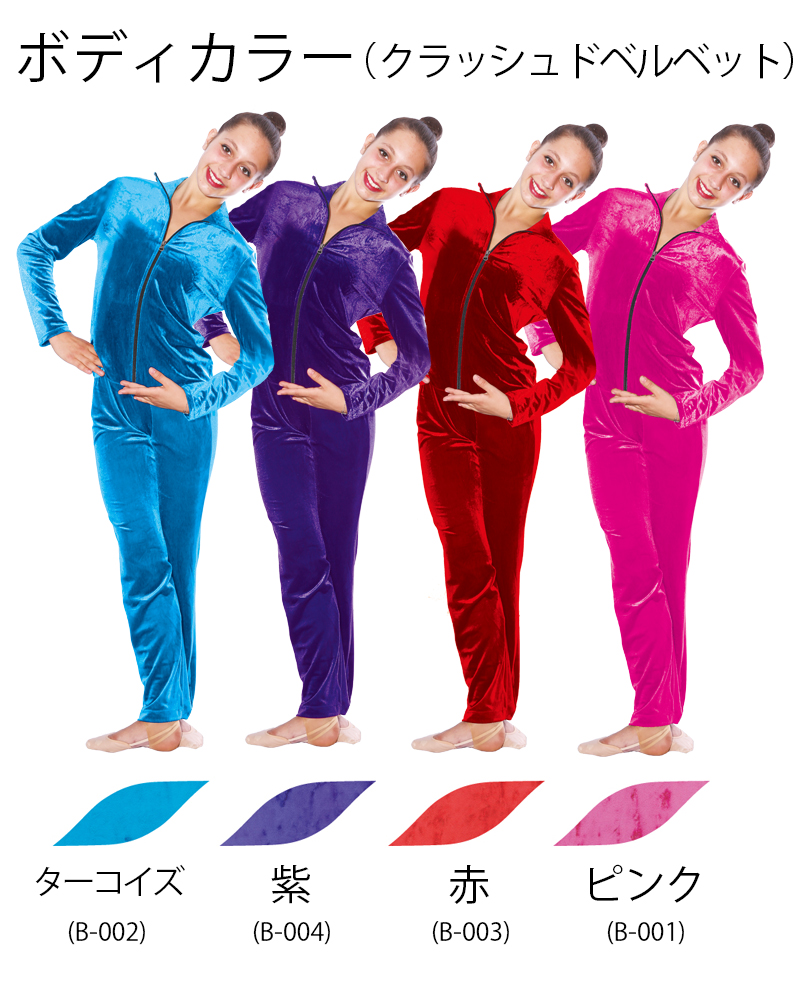 伸縮性、強度など最高級のベルベット生地を使用したチームジャージです。体操・新体操・バレエ・HIPHOPなど様々なジャンルの皆様に。襟の素材を変更することが出来ます。オリジナルロゴのプリントや刺繍、クリスタルでチーム名等を入れることも可能です(プリント、刺繍、クリスタルロゴの料金はaiデータをいただいた場合の料金です。それ以外のデータの場合はお問合せください)その他、詳細はお問合せください。